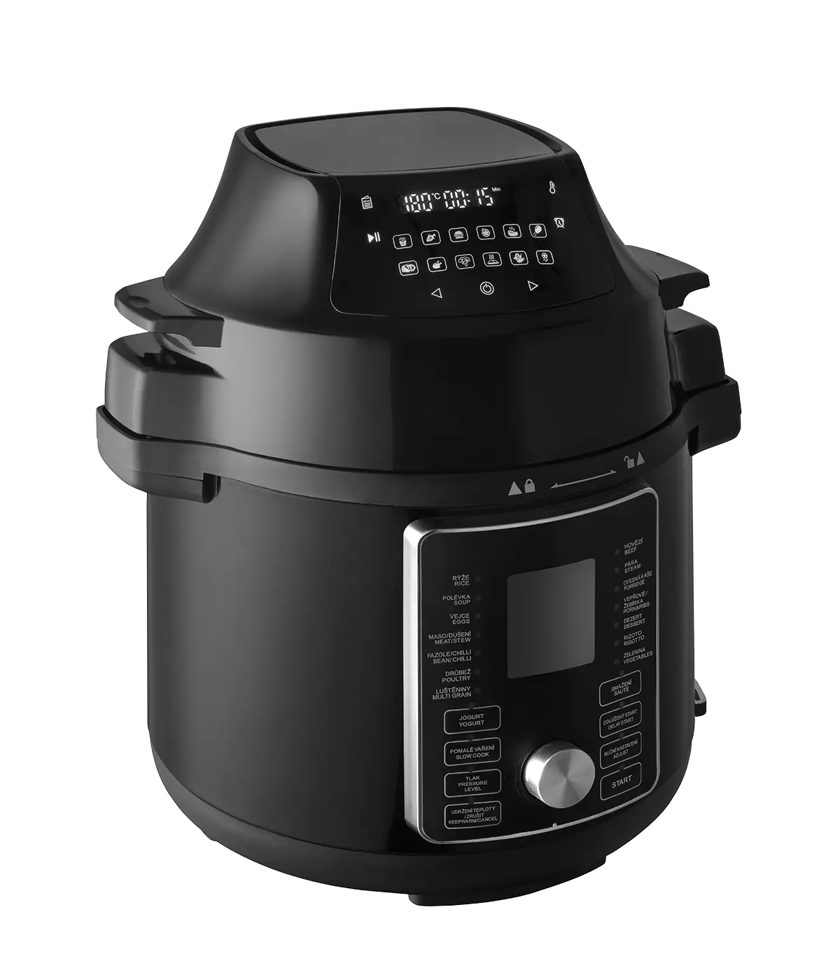 Multifunkčný tlakový hrniec COOKERY je vybavený ovládacím panelom v češtine, čo výrazne uľahčuje jeho používanie. Vďaka intuitívnemu rozhraniu v rodnom jazyku ľahko a rýchlo nastavíte všetky potrebné funkcie bez toho, aby ste museli dlho premýšľať nad prekladom alebo zložitým nastavením. S obsluhou hrnca si teda poradí každý, a varenie sa tak stáva ešte jednoduchším a pohodlnejším.