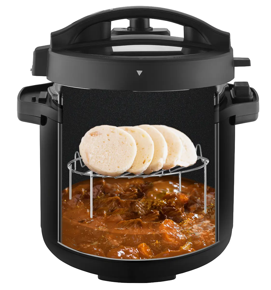 S multifunkčným tlakovým hrncom COOKERY môžete pripraviť hlavné jedlo aj prílohu súčasne, čo šetrí čas a zjednodušuje varenie. Vďaka jeho všestranným funkciám a bohatému príslušenstvu ľahko uvaríte napríklad dusené mäso a zároveň aj prílohu v podobe ryže či zemiakov.