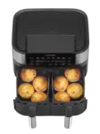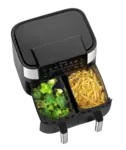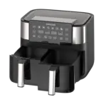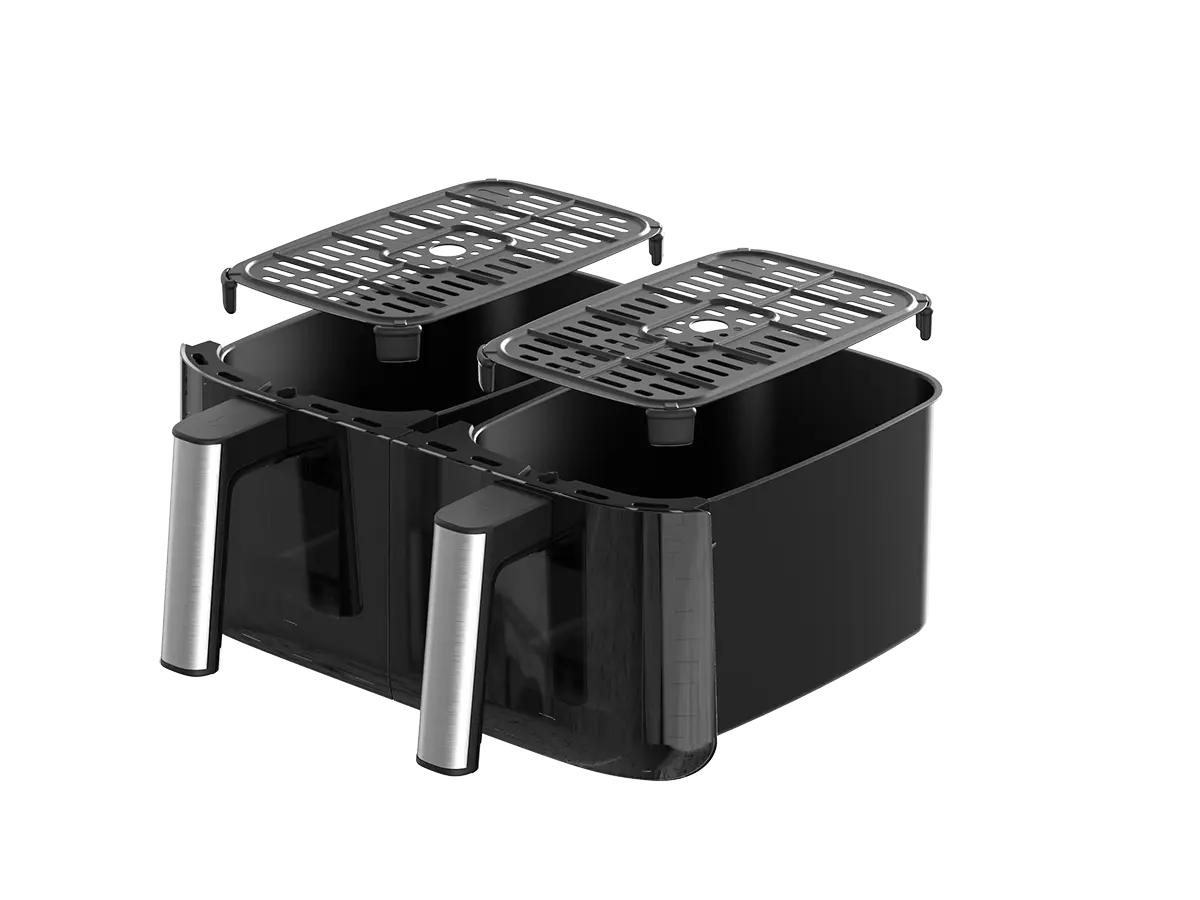 Teplovzdušná fritéza Double 8 l FR8000 je vybavená dvomi 4-litrovými fritovacími košmi, čo prináša množstvo výhod. Umožňujú prípravu dvoch rôznych jedál súčasne, čo šetrí čas a zvyšuje efektivitu varenia. Môžete napríklad pripravovať hlavný chod a prílohu naraz bez toho, aby sa chute alebo vône miešali. Tento praktický dizajn je ideálny pre rodiny a domácnosti, kde sa varí väčšie množstvo jedla, alebo pre tých, ktorí radi experimentujú s rôznymi receptami naraz.