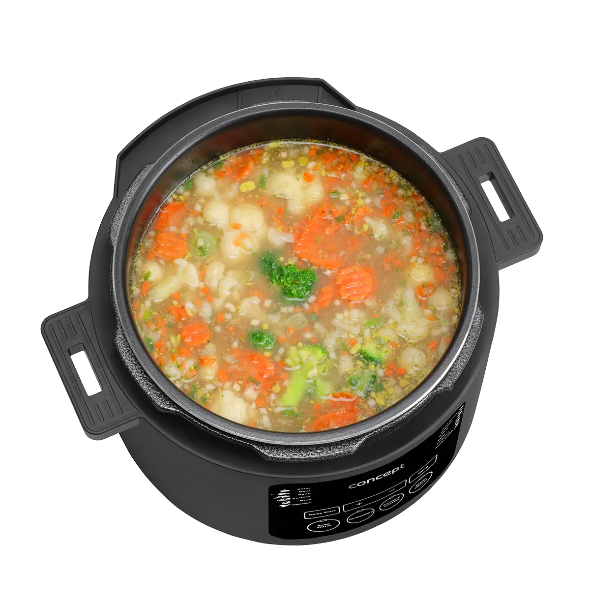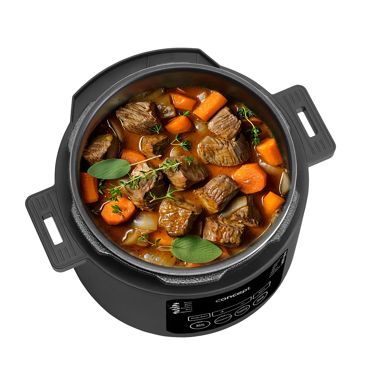 Jednou z hlavných výhod multifunkčného tlakového hrnca je výrazná úspora času a energie . Varenie pod tlakom je oveľa rýchlejšie, čo vám umožní pripraviť jedlá ako hovädzí guláš alebo vývar za zlomok času. Tento spôsob varenia nielen šetrí čas, ale tiež zachováva prirodzenú chuť, vôňu a dôležité živiny potravín. Mäso je vďaka tomu krehkejšie a šťavnatejšie, zatiaľ čo zelenina si uchováva svoju krásnu farbu.
