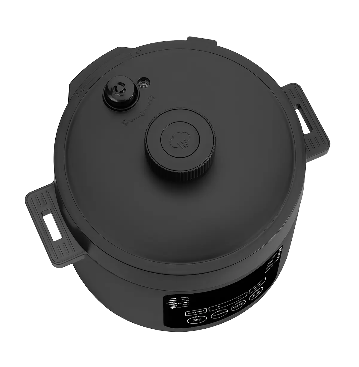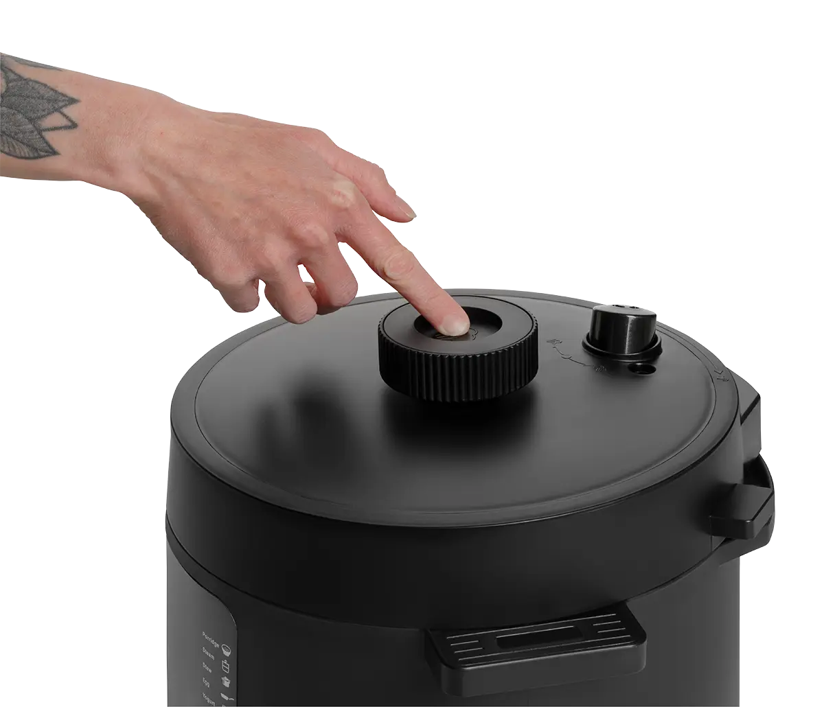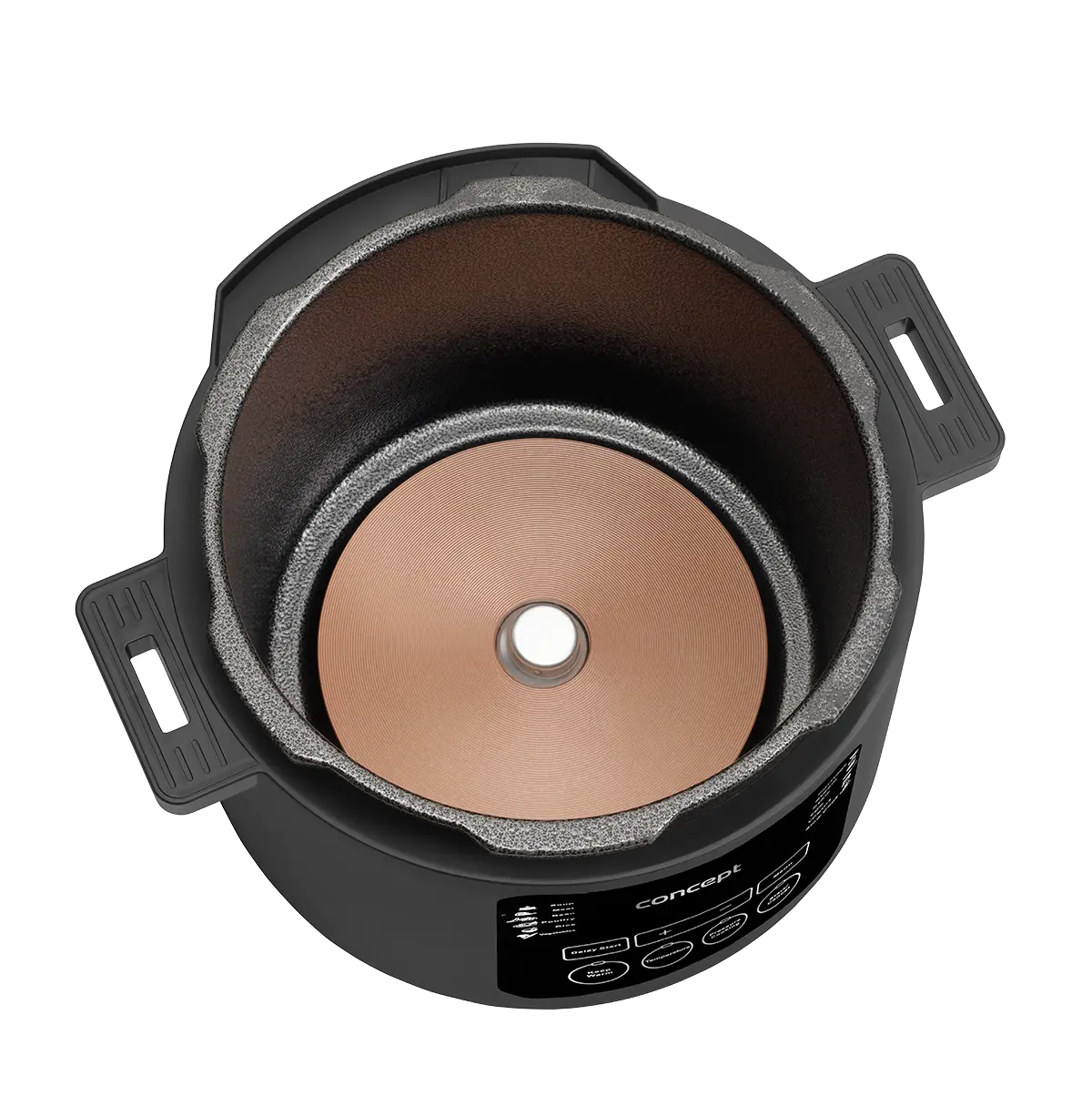 Hrniec je vybavený poistkou proti prehriatiu a protišmykovými nožičkami, ktoré zaisťujú stabilitu na kuchynskej linke. Tlaková pokrievka má automatický bezpečnostný zámok, ktorý bráni nechcenému otvoreniu počas varenia a tým aj riziku úniku pary a obarenia. Navyše je opatrená praktickým tlačidlom pre ľahké a bezpečné uvoľnenie tlaku po dovarení.