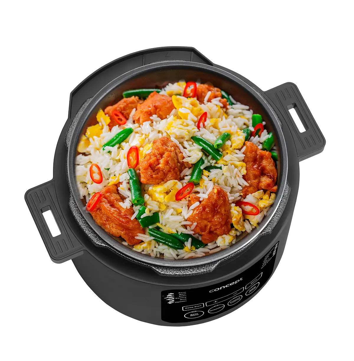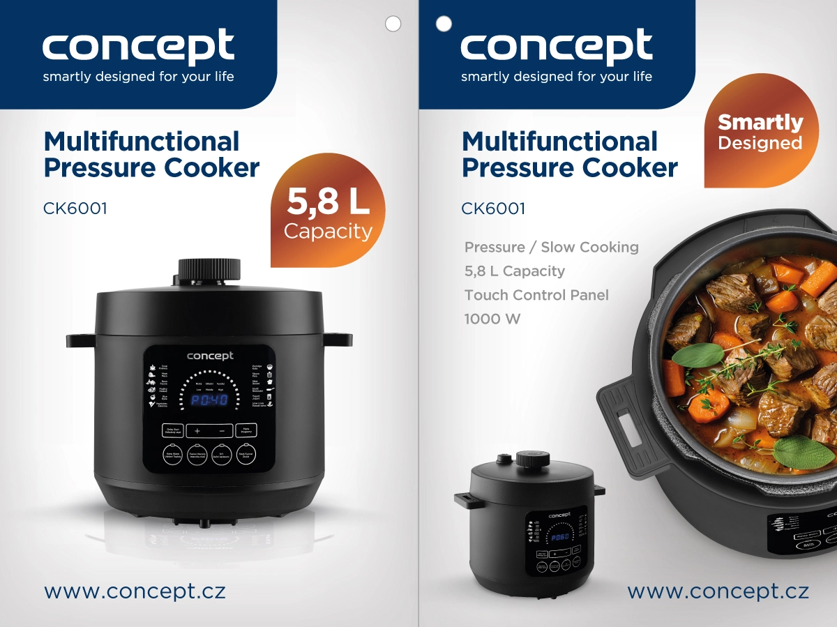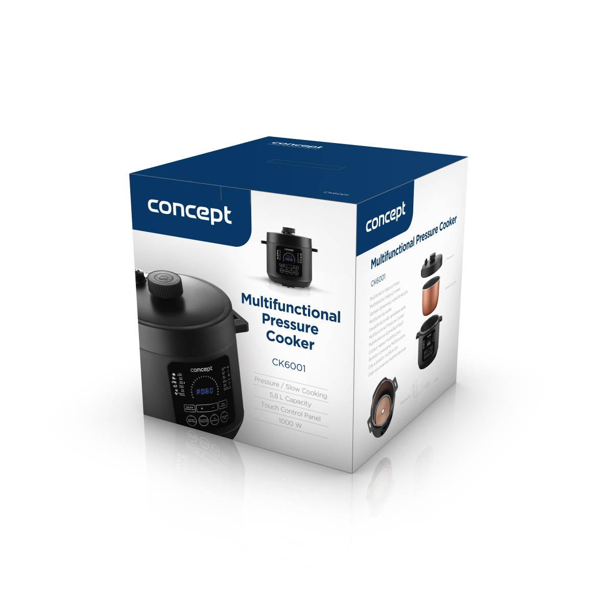 Multifunkčný tlakový hrniec CK6001 ponúka rôzne techniky varenia a vďaka tomu zastane prácu tlakového, pomalého aj parného hrnca, ryžovaru, polievkovaru a jogurtovača . Využiť ho môžete aj ako bežný hrniec alebo panvicu. Disponuje nepriľnavou vnútornou nádobou s objemom 5,8 litra, ktorá zaisťuje jednoduchú údržbu a zabraňuje pripáleniu pokrmov. Táto kombinácia funkcií, rýchlosti a jednoduchej údržby robí z hrnca CK6001 ideálneho pomocníka do každej kuchyne.