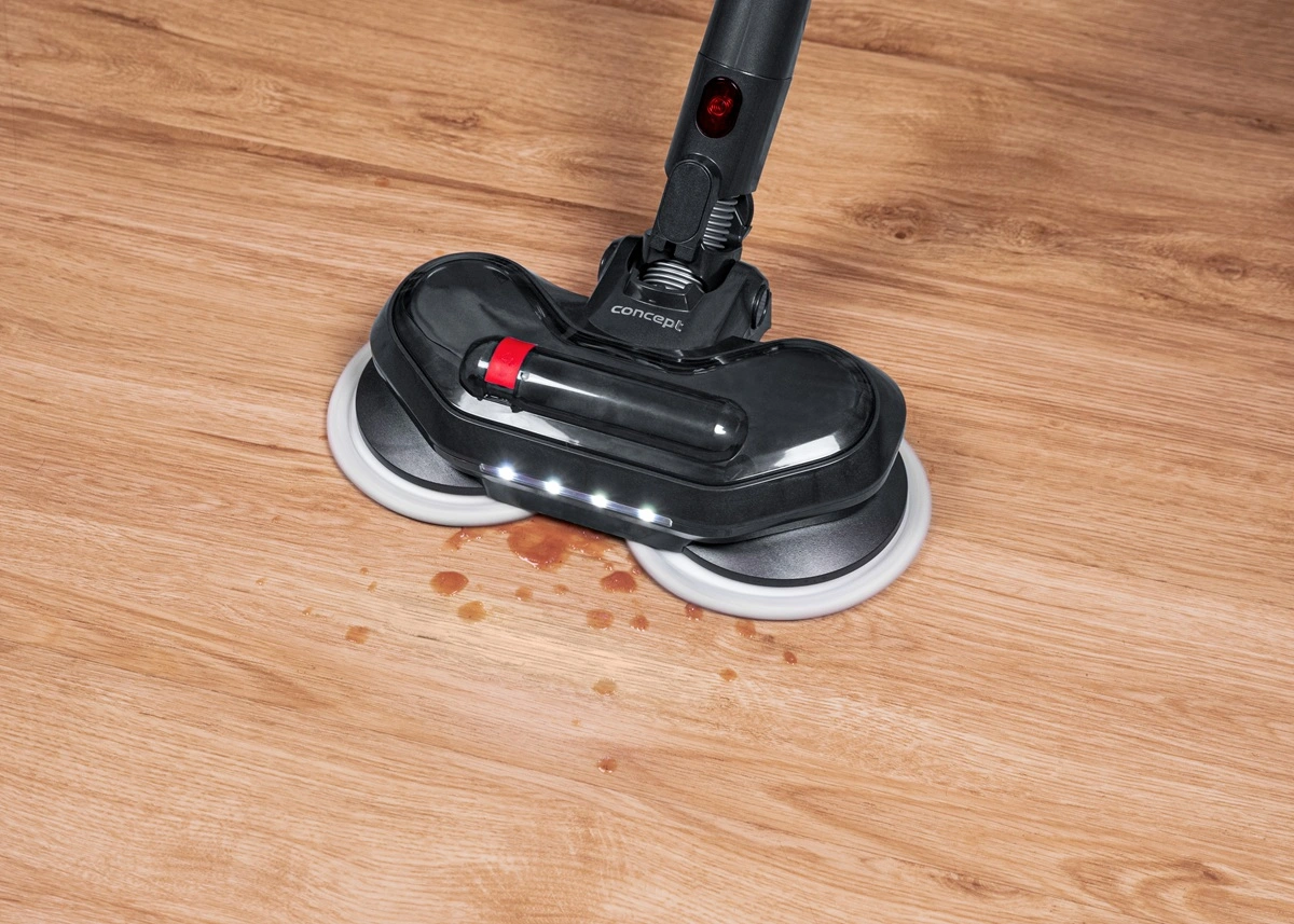 Pri vytieraní využíva vysávač dvojicu rotujúcich mopov, ktoré zaisťujú vysokú účinnosť upratovania. Vďaka rotačnému pohybu si ľahko poradí s odolnými škvrnami a nečistotami, a pritom sa šetrne starajú o povrch podláh. Tento šikovný systém skracuje čas upratovania a premení vysávač na spoľahlivého pomocníka pre perfektne čistý domov.