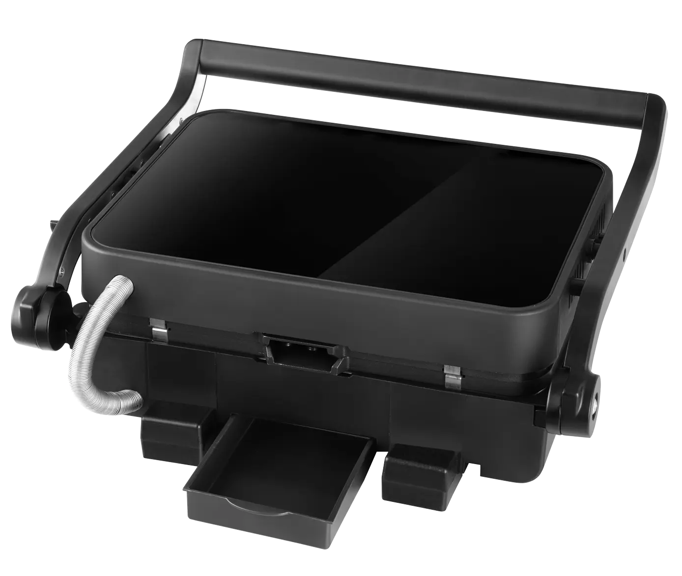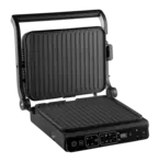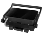 Kontaktný gril GE3600 je vybavený hliníkovými doskami, ktoré zaisťujú rovnomerný rozvod tepla po celej grilovacej ploche, čo vedie k dokonale prepečeným pokrmom. Vďaka nepriľnavému povrchu sa jedlo nelepí a jeho príprava je zdravšia, pretože nie je nutné pridávať olej ani tuk. Prebytočná šťava a tuky sú odvádzané do praktickej odpadovej misky umiestnenej na zadnej strane, čo zjednodušuje údržbu grilu a udržuje pracovnú plochu čistú. Grilovacie dosky sú navyše veľmi ľahko umývateľné - po vychladnutí ich stačí utrieť alebo vložiť do umývačky riadu. Pre ľahké skladovanie je možné gril uzamknúť v zatvorenej polohe, čo ušetrí miesto vo vašej kuchyni.