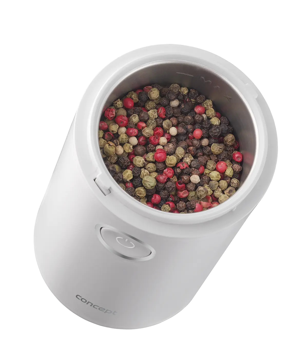 Mlynček na kávu Concept KM6000 je skvelou voľbou pre milovníkov čerstvej kávy a domácej gastronómie. Jeho primárnou funkciou je mletie kávových zŕn na ideálnu hrubosť, čo zaisťuje plnšiu a intenzívnejšiu chuť nápoja. Okrem kávy môžete mlynček využiť aj na mletie korenia, byliniek, orechov a maku, čím obohatíte svoje kulinárske výtvory o čerstvé a aromatické ingrediencie.