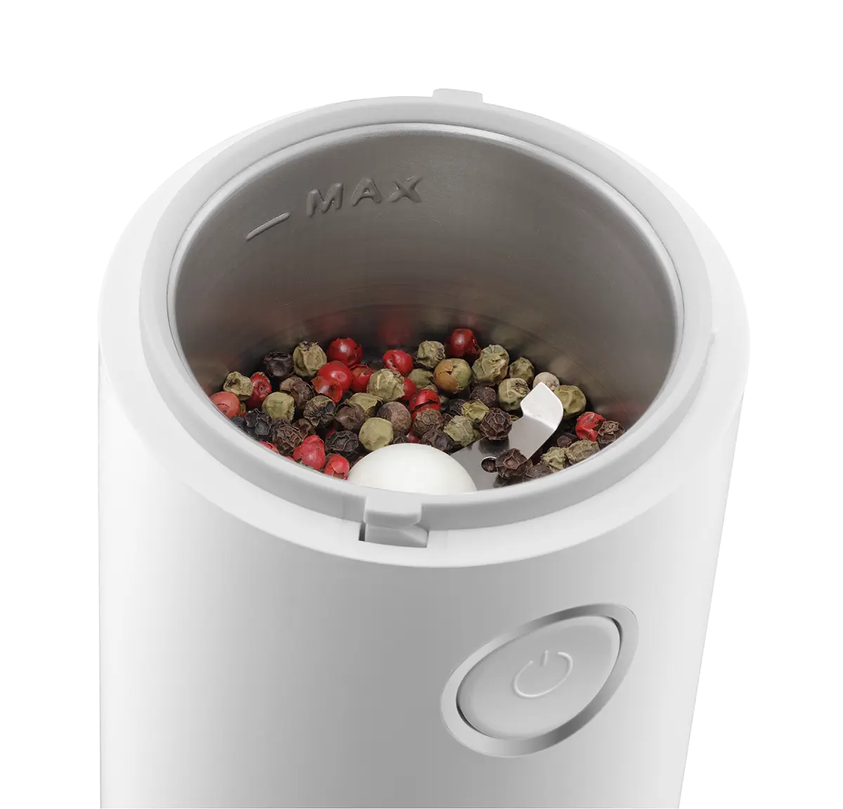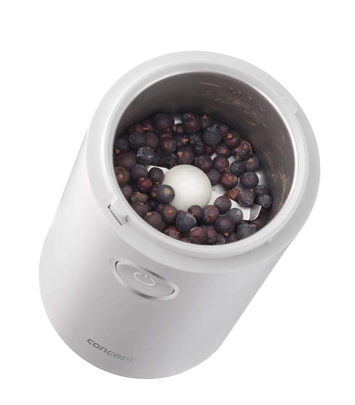 Mlynček na kávu v čiernom dizajne slúži na mletie kávy, korenia, byliniek, orechov, maku a ďalších suchých surovín. Dosahuje rýchlosť 22 000 otáčok za minútu. Je vybavený ostrými nerezovými nožmi a praktickým priezorom vo viečku.