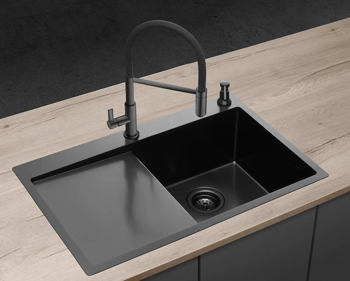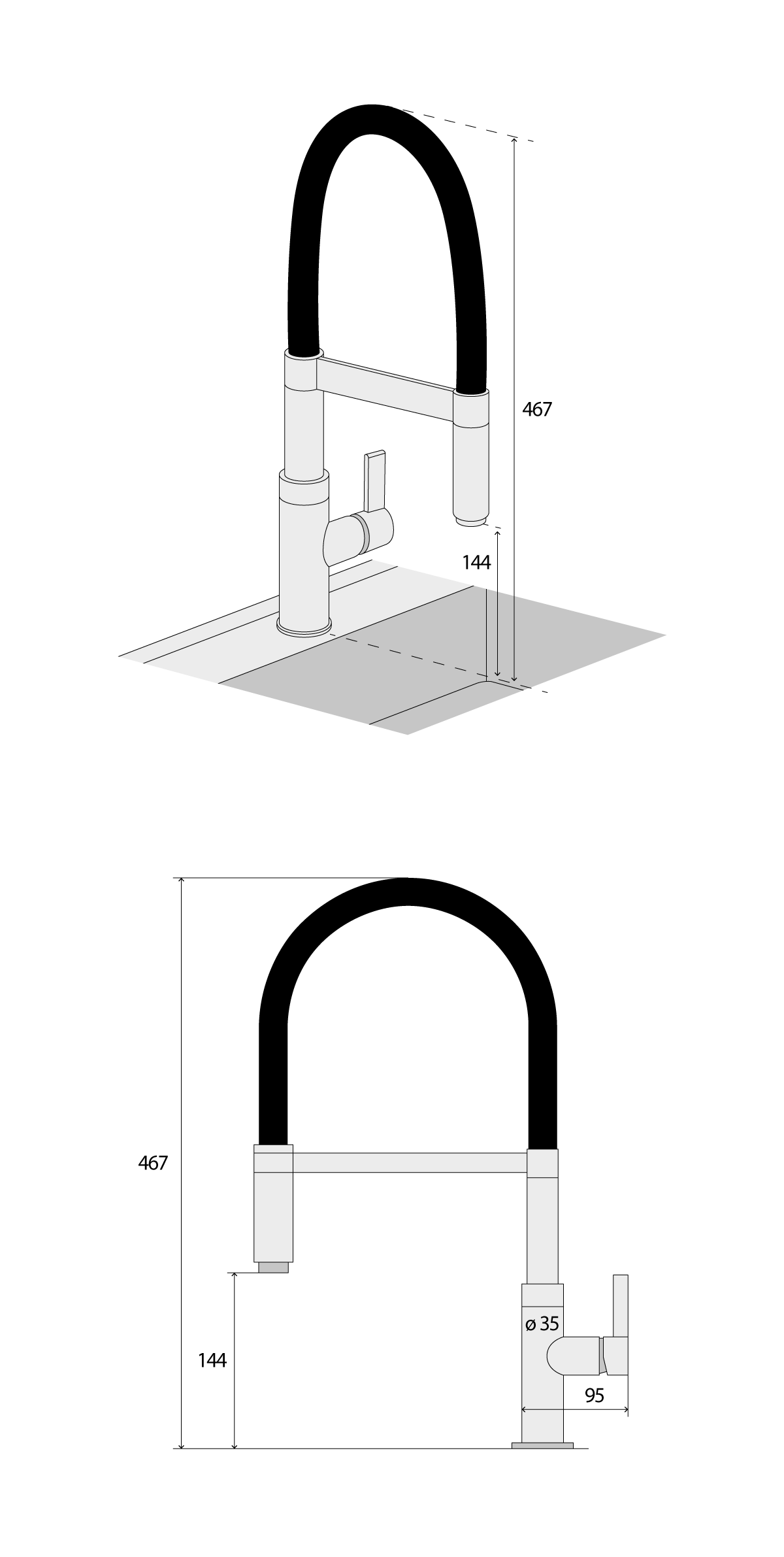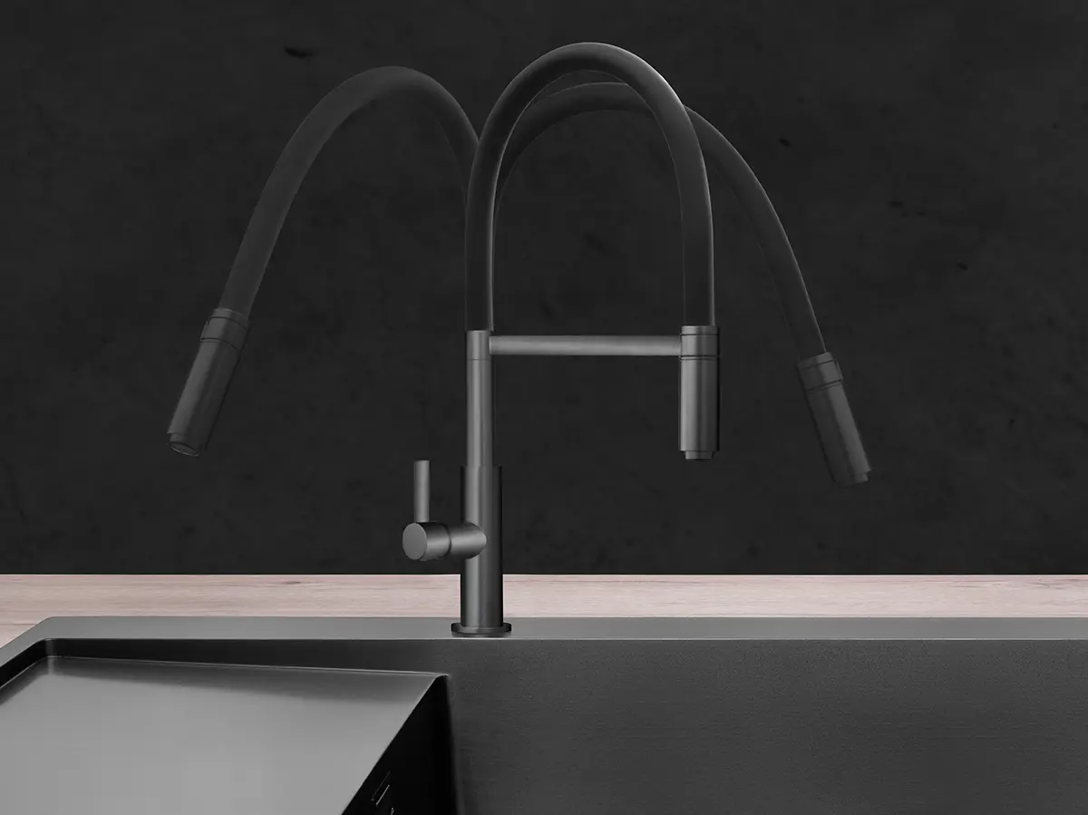 Drezová batéria BDC7547ds je spracovaná v modernom dizajne tmavého nerezu. Je vybavená flexibilnou silikónovou hadicou, ktorú môžete kedykoľvek ľahko odňať. Vďaka tejto hadici sa ľahko dostanete aj na menej prístupné miesta a dokonale umyjete každý kúsok vášho riadu. Batériu BDC7547ds ľahko zladíte s nerezovými drezmi Concept v dizajne TITANIA.