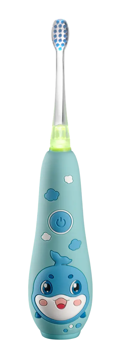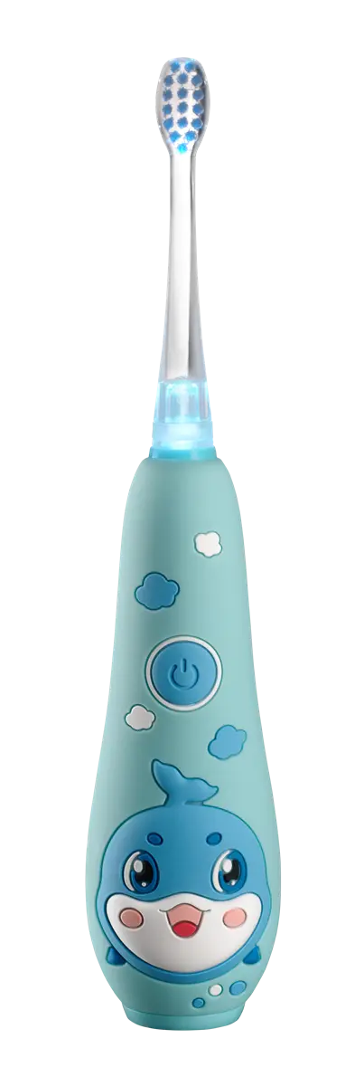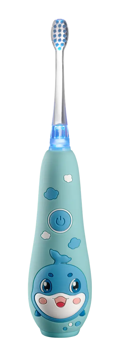 Sonická detská zubná kefka je ideálna pre deti vo veku 1-5 rokov. Vďaka jemnej technológii je šetrný k citlivým detským ďasnám a zaisťuje pohodlné čistenie. Má ergonomický tvar, mäkké štetinky a hravý modrý design, ktorý spríjemní každodenné čistenie zúbkov. Farebné LED osvetlenie hlavice navyše dodáva čistenie zábavný prvok a motivuje deti k pravidelnej starostlivosti o ich úsmev. Naopak biele podsvietenie umožňuje rodičom ľahko skontrolovať správne čistenie zúbkov a podporiť ústnu hygienu už od malička.