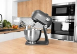 Robot je vybavený priestrannou 5litrovou nerezovou misou s praktickým držadlom a vekom a tromi celokovovými metlami, ktoré si hravo poradia s prípravou krémov, šľahačky, bielkov, majonézy, omáčok aj kysnutého cesta. Flexi metla s gumovou stierkou je ideálna pre ľahké krémy, náplne a polevy - dokonale kopíruje steny misy a efektívne stiera zmes bezo zvyšku. Hnetací hák bez námahy spracuje aj hutné kysnuté cestá a šľahacia metla vyšľahá všetko do nadýchanej ľahkosti. Vďaka planetárnemu systému miešania sa metla aj hák otáčajú nielen okolo svojej osi, ale zároveň krúžia po celej ploche misy, čo zaisťuje rovnomerné a precízne spracovanie surovín. Po dokončení práce sa metla alebo hák vďaka systému Smart Stop Position vždy zastaví v ideálnej pozícii pre ľahké vybratie.