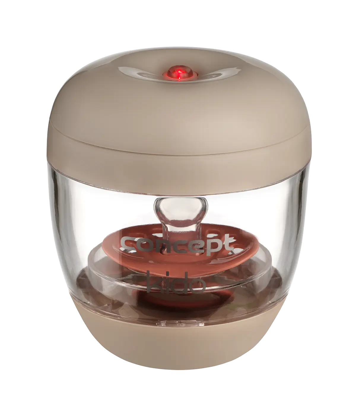 UV sterilizátor Concept SD4010 KIDO sa ovláda jednoducho a intuitívne jedným tlačidlom. Môžete doň predmet vložiť alebo vďaka odnímateľnému dnu nasadiť sterilizátor priamo na cumlík alebo fľaštičku, čím zaistíte jej sterilizáciu. Tento dizajn umožňuje efektívnu sterilizáciu bez nutnosti oddeľovania cumlíka, čo šetrí čas a zaisťuje vyššiu hygienu.