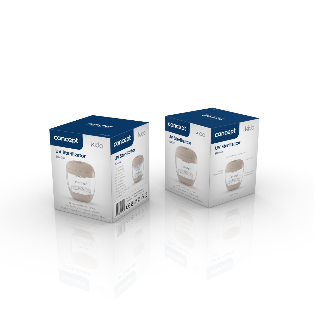 Sterilizátor Concept SD4010 KIDO je praktickým pomocníkom pre rodičov, ktorí dbajú na hygienickú čistotu. Počas 2 minút dokáže účinne dezinfikovať cumlíky, cumlíky, náustky téglikov, hlavice kefiek a ďalšie drobné predmety, ktoré vaše dieťa používa. Odolný ABS materiál zabraňuje prieniku UV žiarenia, čím zaisťuje bezpečné a dlhodobé používanie.