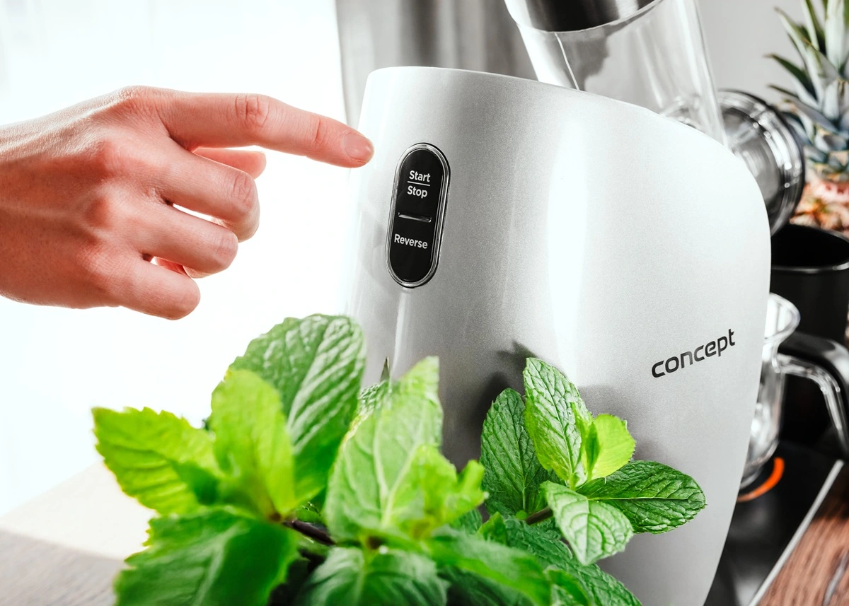Odšťavovač Concept LO7250 Nutriboost je navrhnutý tak, aby pracoval veľmi ticho. S hlučnosťou iba 65 dB patrí medzi najtichšie modely vo svojej kategórii. Ovládanie prístroja je veľmi jednoduché vďaka jednej rýchlosti a spätnému chodu, ktorý slúži na uvoľnenie zablokovaných surovín.
