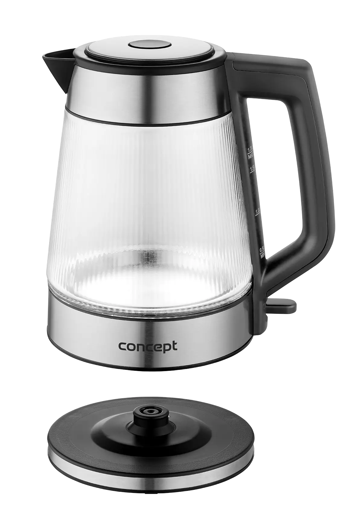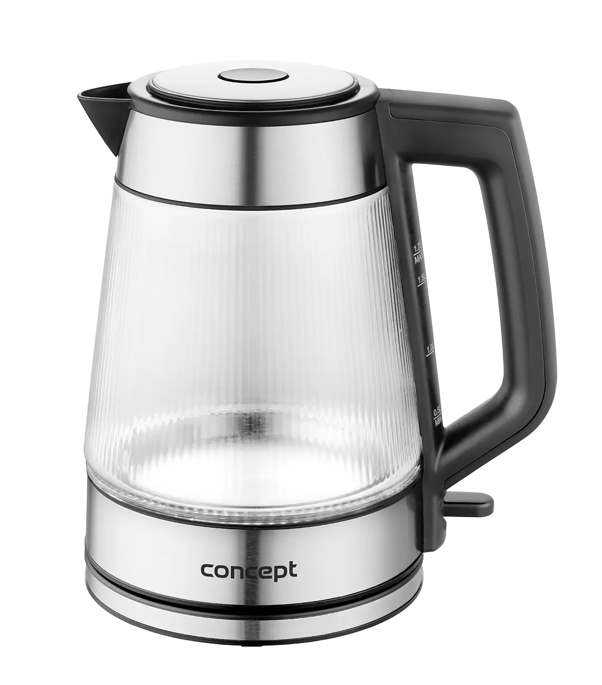 Rýchlovarná kanvica Concept RK4210 zaujme moderným dizajnom s vrúbkovaným sklom a nerezovými detailmi. S objemom 1,7 l ľahko pripravíte až 7 šálok obľúbeného horúceho nápoja. >svetelným podsvietením, ktoré nielen slúži ako indikátor prevádzky, ale zároveň pridáva na štýle a funkčnosti.