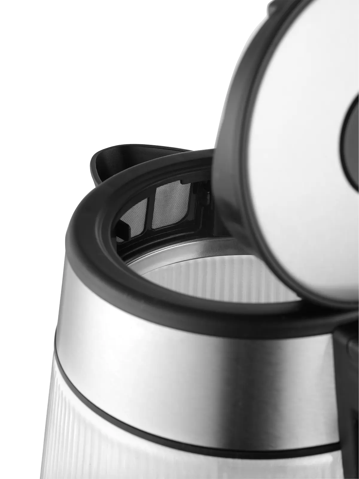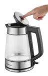 Rýchlovarná kanvica je vybavená digitálnym ovládaním s možnosťou nastavenia 7 stupňov teploty, takže v nej pripravíte všetko od detských príkrmov po najrôznejšie druhy čajov. Vyniká dizajnom dymového skla a nerezu s farebným podsvietením.