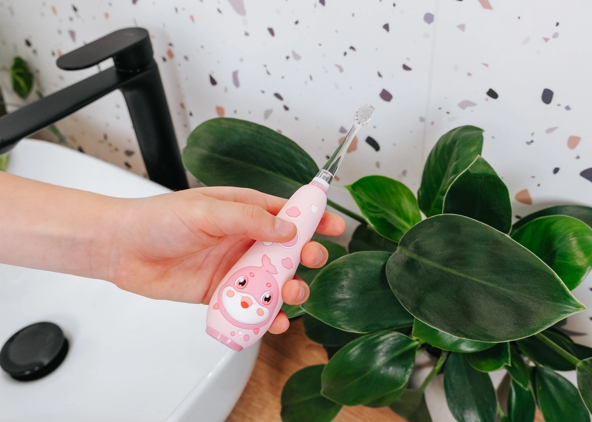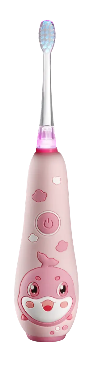 Sonická detská zubná kefka je ideálna pre deti vo veku 1-5 rokov. Vďaka jemnej technológii je šetrná k citlivým detským ďasnám a zaisťuje pohodlné čistenie. Má ergonomický tvar, mäkké štetinky a hravý ružový design, ktorý spríjemní každodenné čistenie zúbkov. Pogumovaný povrch navyše zaisťuje pohodlné držanie bez kĺzania. Farebné LED osvetlenie hlavice navyše dodáva čisteniu zábavný prvok a motivuje deti k pravidelnej starostlivosti o ich úsmev. Naopak biele podsvietenie umožňuje rodičom ľahko skontrolovať správne čistenie zúbkov a podporiť ústnu hygienu už od malička.
