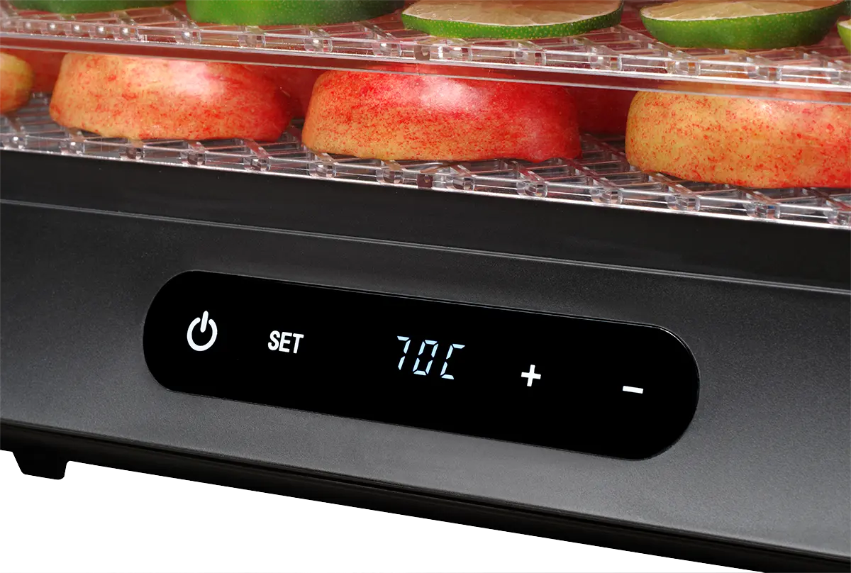 Vďaka prehľadnému digitálnemu ovládaniu ľahko nastavíte teplotu v rozmedzí 35 - 70 °C podľa potreby. S časovačom až na 48 hodín máte sušenie plne pod kontrolou a po uplynutí nastaveného času sa sušička automaticky vypne.