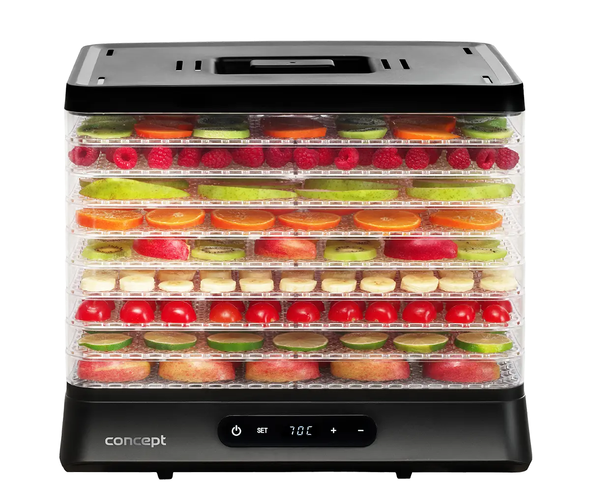 Sušička SO2042 s výkonom 500 W ľahko zvládne aj väčšiu úrodu. Vďaka 9 transparentným sušiacim platam poskytuje dostatok priestoru na sušenie potravín na celý rok. Stačí ich nakrájať, rovnomerne rozložiť, nastaviť požadovanú teplotu a zapnúť. Zvyšok už sušička urobí za vás. Integrovaný ventilátor so špeciálne navrhnutými prieduchmi zaručuje rovnomerné sušenie vo všetkých poschodiach, takže vaša úroda bude dokonale usušená.