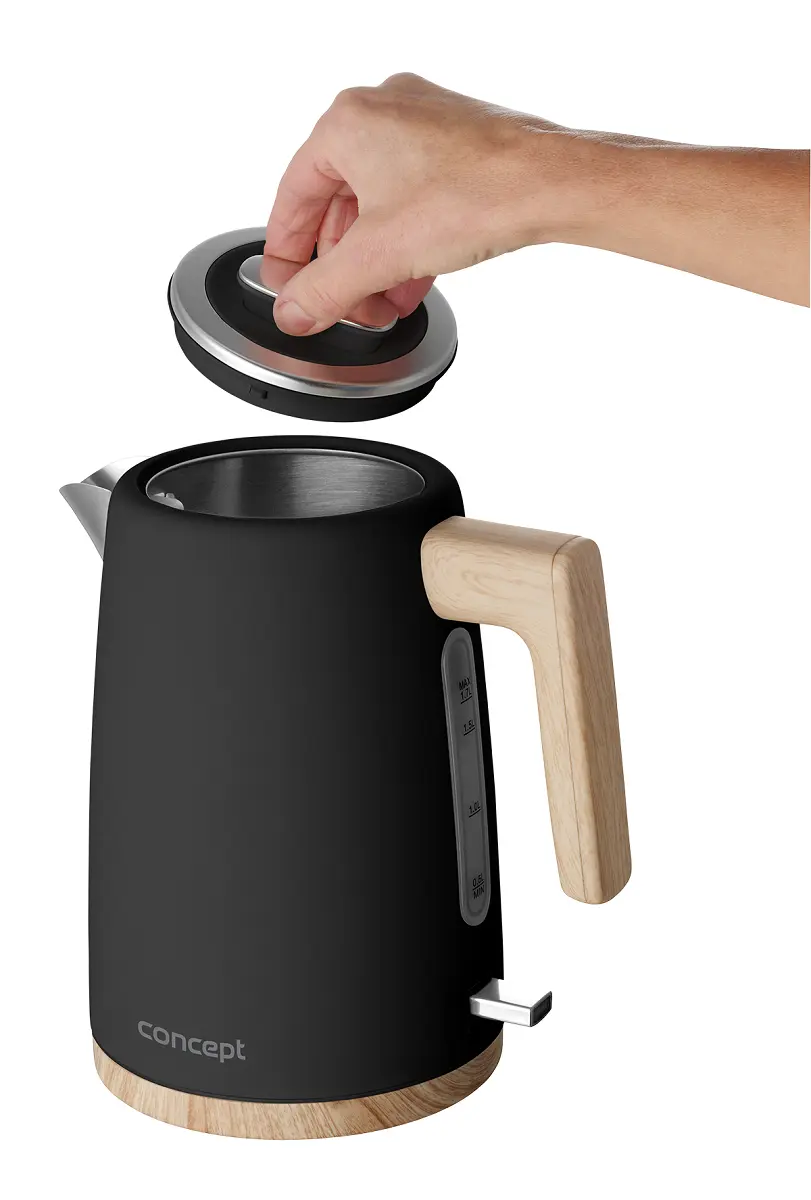 Rýchlovarná kanvica Concept RK3316 ELWOOD je spojením moderného škandinávskeho dizajnu a kvalitného spracovania. Kombinácia nerezovej ocele s elegantným matným povrchom a doplnkov v dizajne dreva sú nielen zárukou estetického potešenia, ale aj vysokej odolnosti a kvality. Perfektne zapadne do modernej aj tradičnej kuchyne. Pojme 1,7 l vody, z ktorej uvaríte až 7 šálok vášho obľúbeného nápoja.
