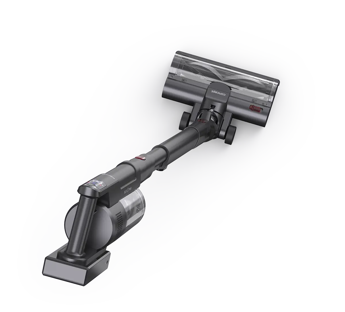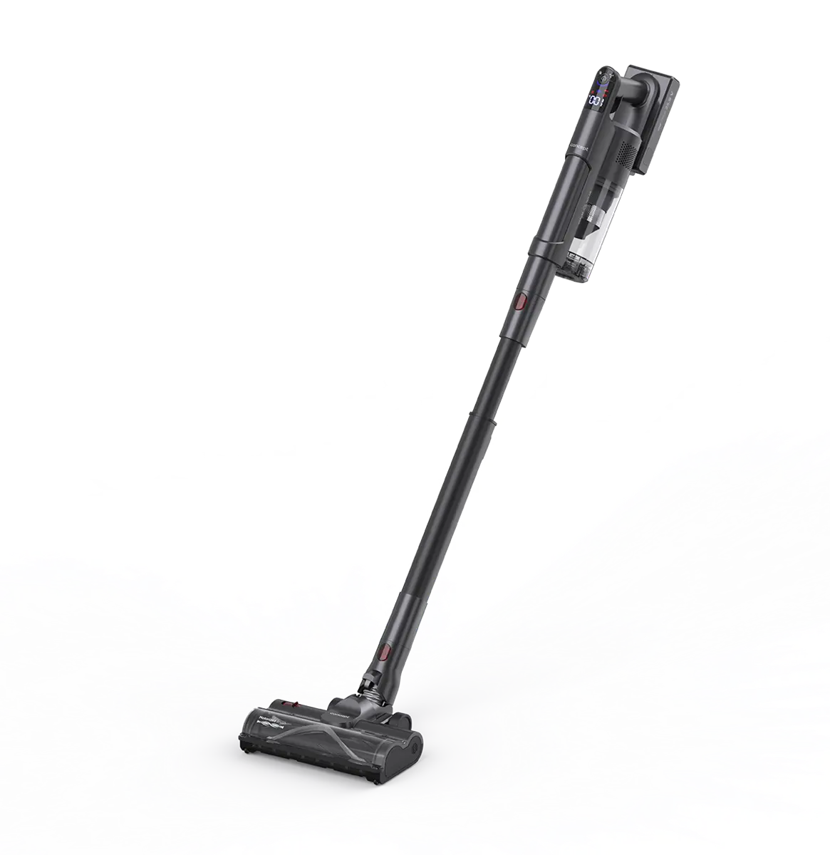 Digitálny displej vysávača prehľadne zobrazuje všetko potrebné pre pohodlné upratovanie. Ukazuje stav batérie, aktuálne zvolený výkon (nízky, stredný, vysoký) a zvýšené otáčky rotačnej kefy. Informuje tiež o zablokovanej kefke alebo upchatom saní.