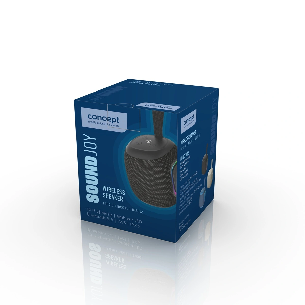 Bezdrôtový reproduktor SoundJoy Concept BR5010; Výkon 10 W; Výdrž 20 h; Ambient LED; Vezmite hudbu so sebou – kamkoľvek idete; S mini reproduktorom SoundJoy Concept BR5010 máte svoju hudbu vždy po ruke – či už ste doma alebo na cestách. Je ľahký a komp...