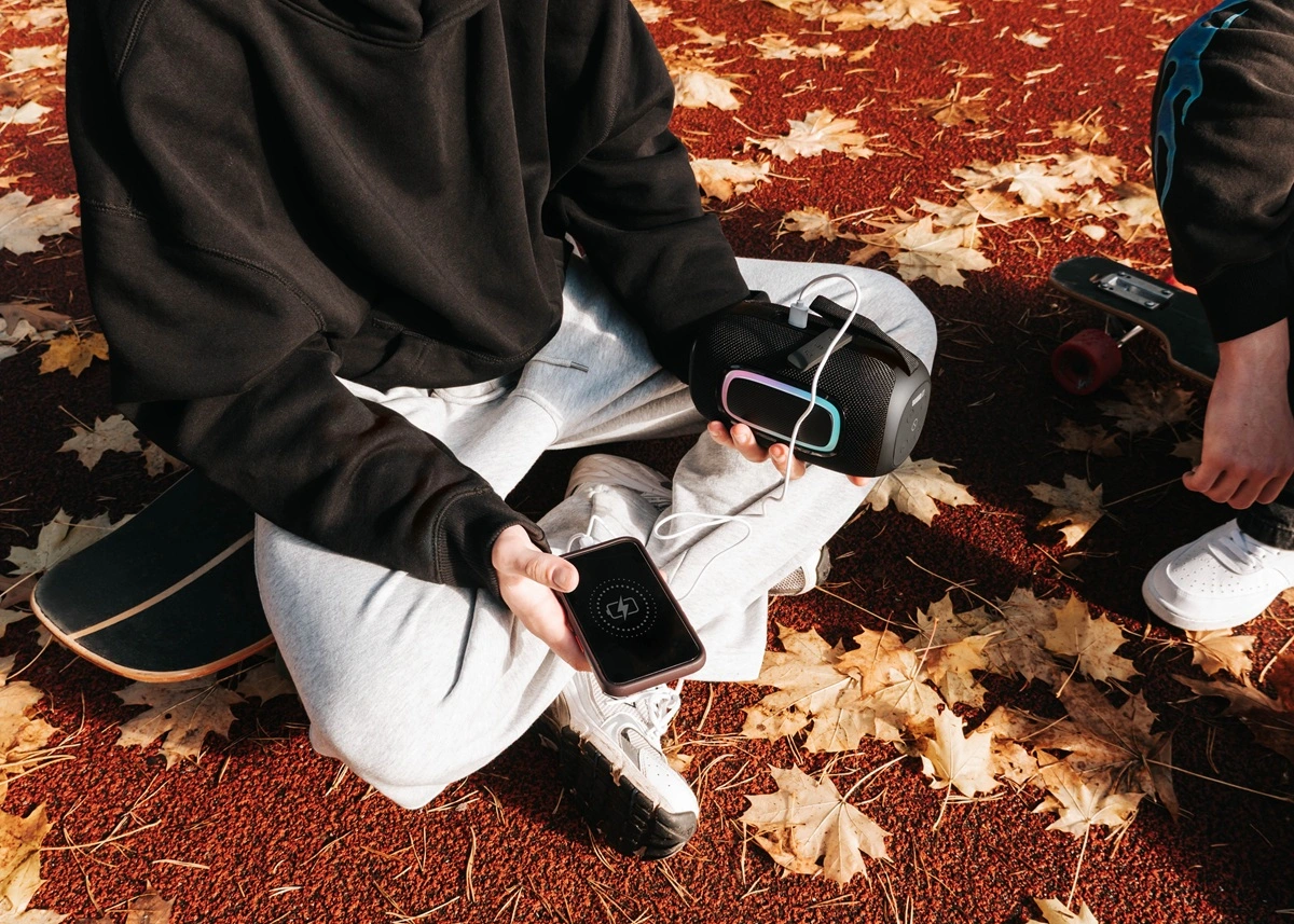 Reproduktor SoundJoy Concept BR5020 ponúka 4 režimy ambientného LED osvetlenia. Svetlá vytvoria skvelú atmosféru doma aj vonku – pri pokojnom večeri alebo na večierku s priateľmi. Ak chcete šetriť batériu, môžete osvetlenie jednoducho vypnúť alebo prepnúť do jednofarebného režimu.