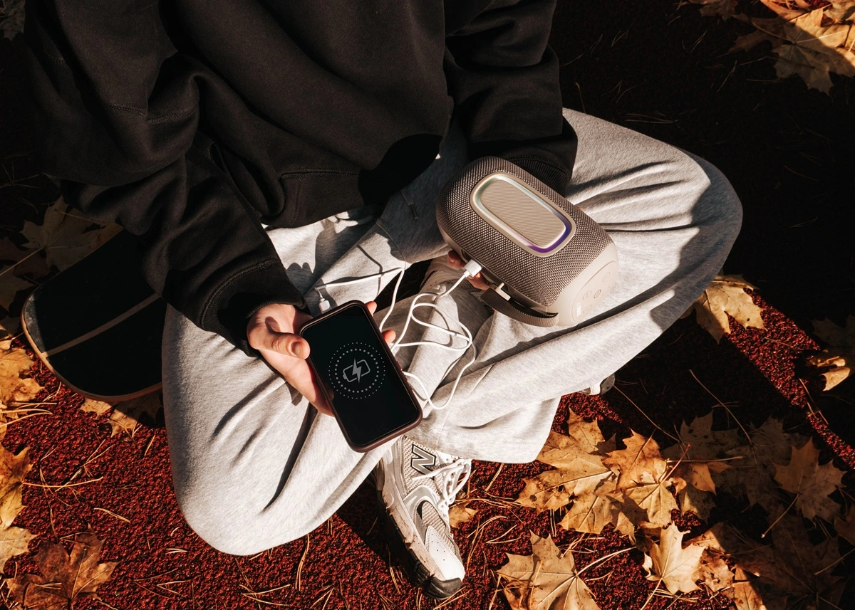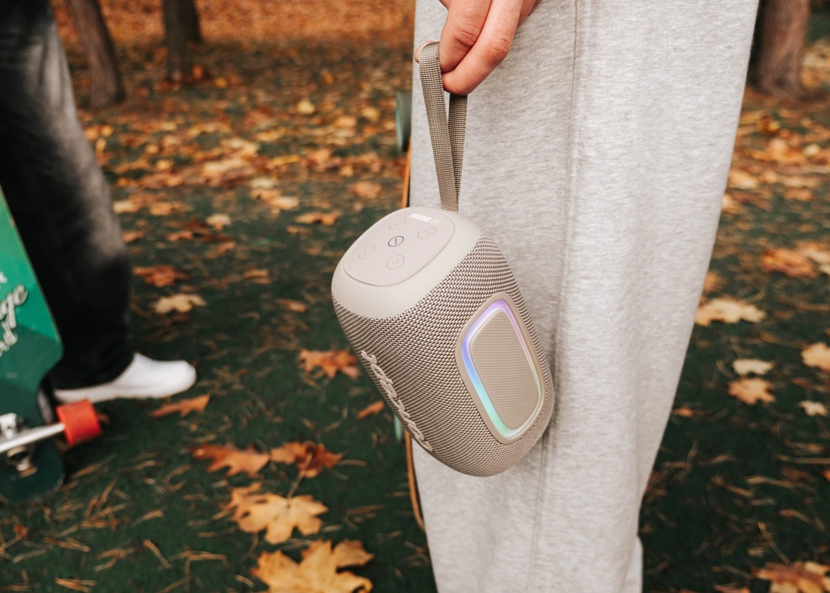 Reproduktor SoundJoy Concept BR5021 ponúka 4 režimy ambientného LED osvetlenia. Svetlá vytvoria skvelú atmosféru doma aj vonku – pri pokojnom večeri alebo na večierku s priateľmi. Ak chcete šetriť batériu, môžete osvetlenie jednoducho vypnúť alebo prepnúť do jednofarebného režimu.