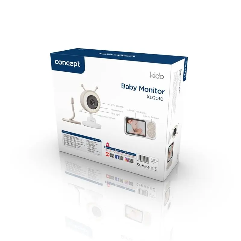 Detská pestúnka Concept KD2010 ponúka tri spôsoby uchytenia. Najjednoduchšie a najviac prispôsobivé riešenie predstavuje flexibilný držiak, ktorý umožňuje bezpečne umiestniť kameru kamkoľvek – bez vŕtania do steny alebo zložitej inštalácie. Ľahko ju pripevníte na postieľku, policu, kočík alebo iný povrch a vďaka ohybnému krku nastavíte ideálny uhol záberu. Ďalšie možnosti zahŕňajú stojanček na rovnú plochu alebo pevné uchytenie na stenu, takže opatrovateľku môžete ľahko prispôsobiť každej domácnosti.